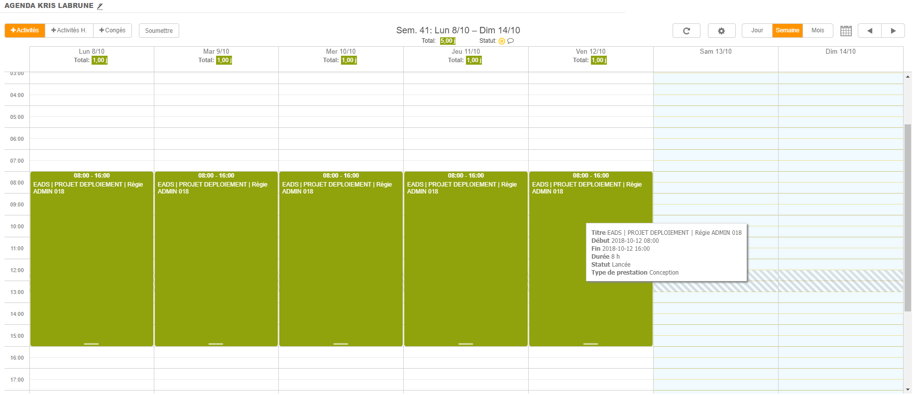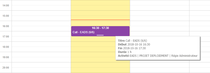 Pour afficher les informations détaillées de la saisie, il suffit de passer le pointeur sur l’activité souhaitée. Une bulle contenant les informations apparaît.