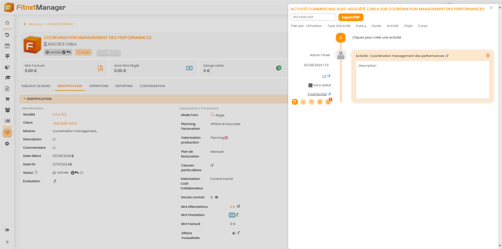 Les tâches et rapports sont saisis via la fonctionnalité Activité commerciale sur les affaires et données RH de Fitnet. Ils apparaissent directement dans l'agenda des collaborateurs inscrits comme participants à ces derniers.