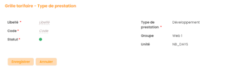 - Libellé (champ obligatoire*) : champ texte libre qui nomme la grille tarifaire