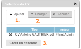 Le processus est le suivant : Ajouter le CV du Candidat > Charger > Créer un Candidat