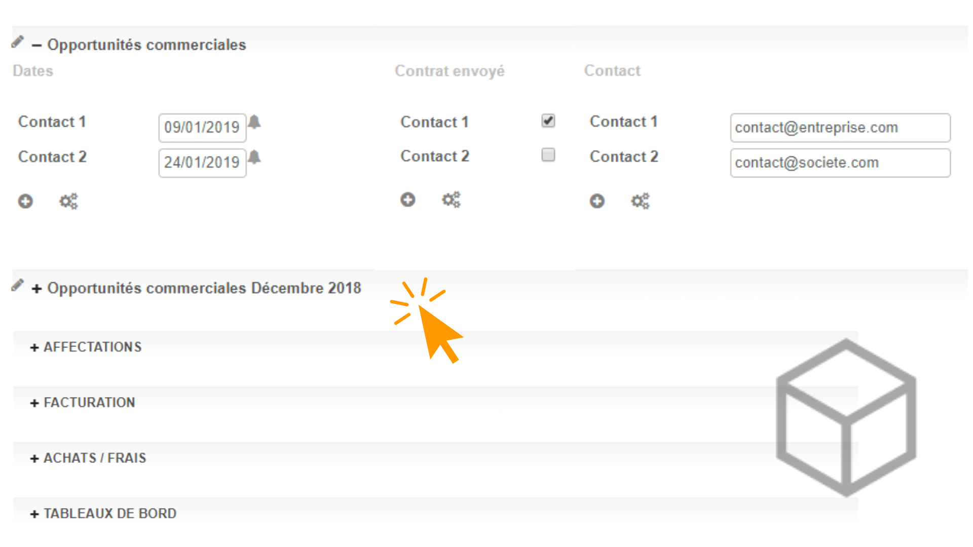 Affaires : création des volets personnalisables