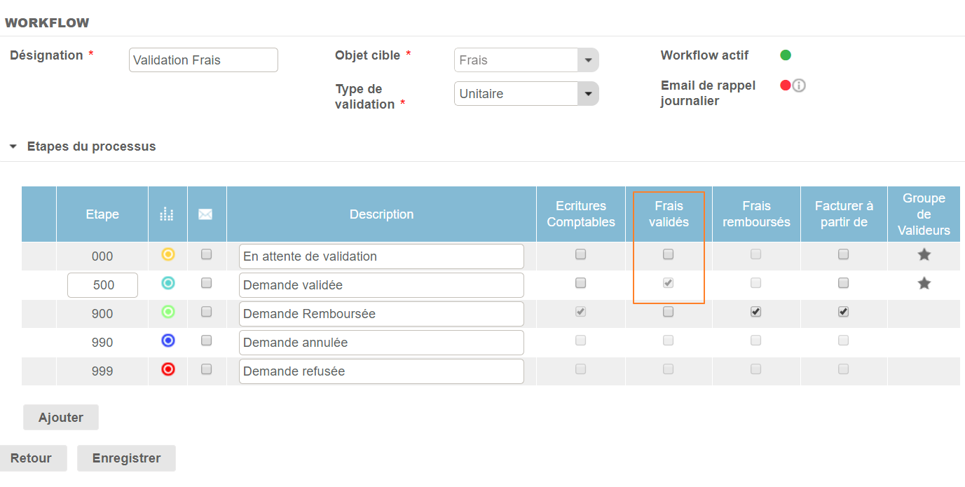 Pour activer ce paramètre, il faut qu'un workflow sur les frais existe sur la société en question. La signature électronique sur les pièces jointes des frais sera appliqués à partir de l'étape frais validés.