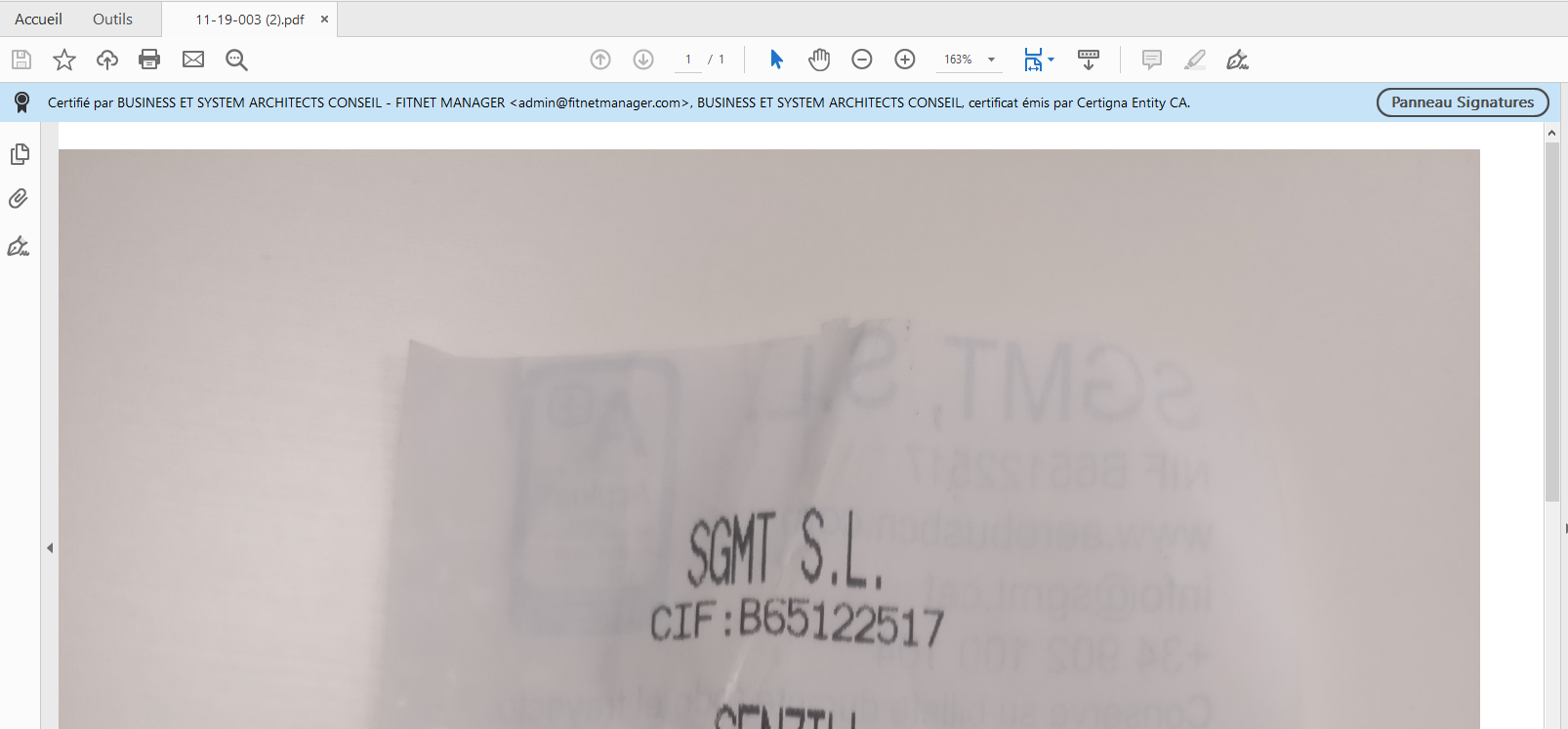 A partir de l'étape 500 la signature électronique est appliquée sur le justificatif. Celle-ci est visible depuis un lecteur de PDF comme Adobe Reader.