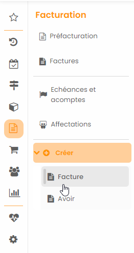 Attention : il est aussi possible de créer manuellement une facture libre en dehors des propositions du menu Pré-facturation. La création se fait via le menu Facturation > Créer.