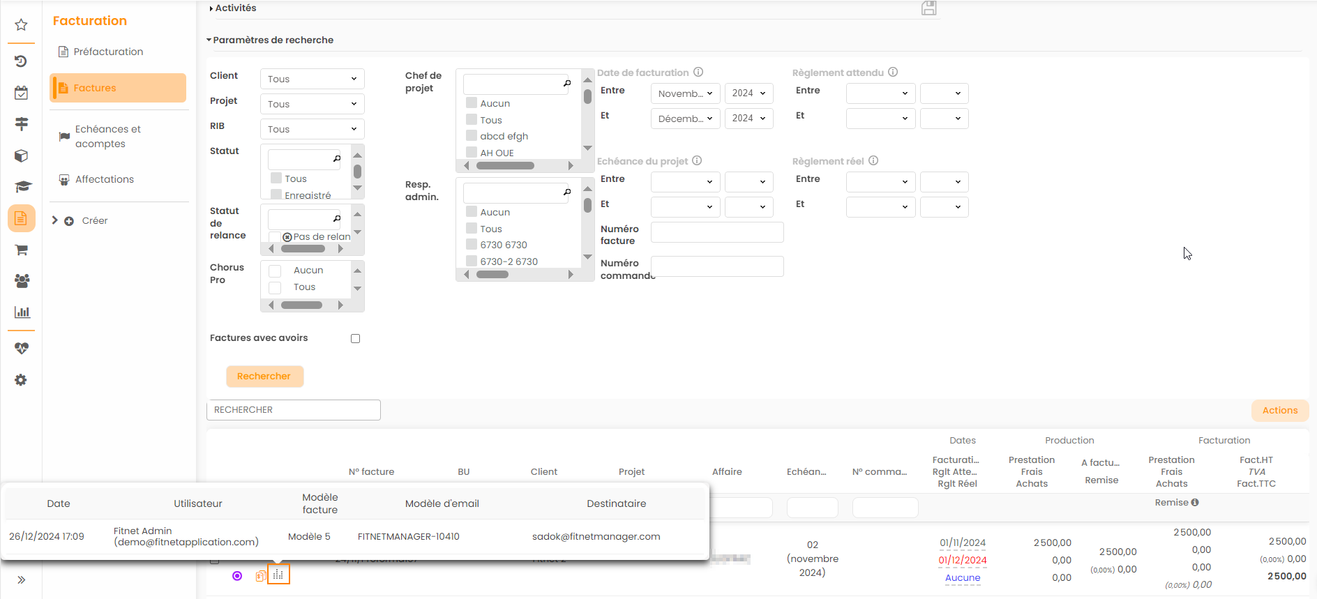 Envoi dématérialisé des factures depuis Fitnet