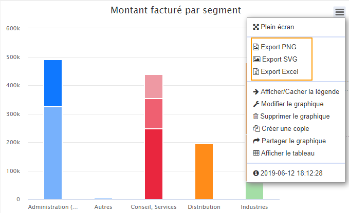 Il est possible d'exporter de 3 façons différentes les graphiques que l'on a générés. Pour cela, il faut cliquer sur le menu