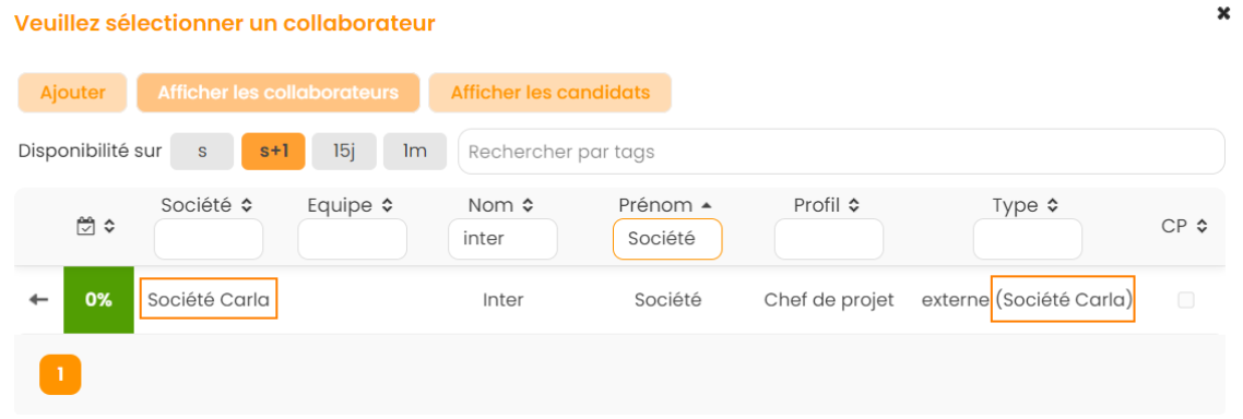 Le collaborateur de SB apparaitra comme collaborateur externe lors de son affectation depuis l'affaire de SA :
