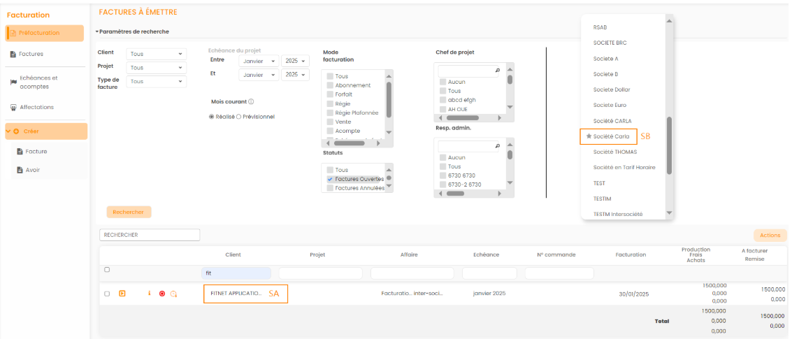 Cette proposition de facture est à retrouver dans le module Préfacturation de SB :