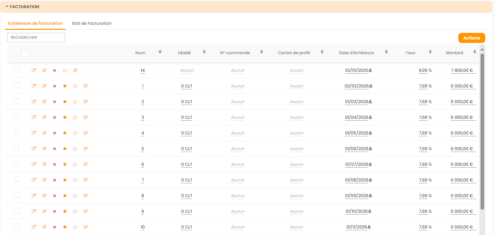 Génération de l’échéancier de facturation