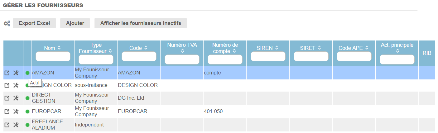 Les fiches fournisseurs s'activent et se désactivent simplement pour maintenir une base à jour.