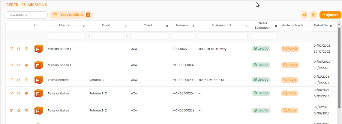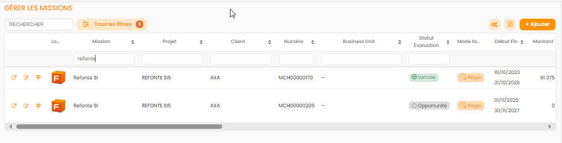 Depuis le bouton "Ajouter" vous pouvez également créer une affaire. La création de projet et détaillée dans l'article en lien.