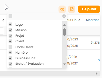 vous pouvez sélectionner les colonnes du tableaux en cochant/décochant les checks boxes :