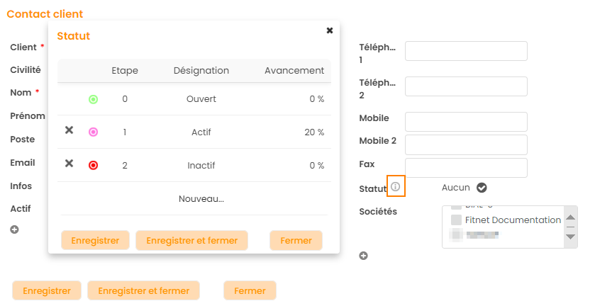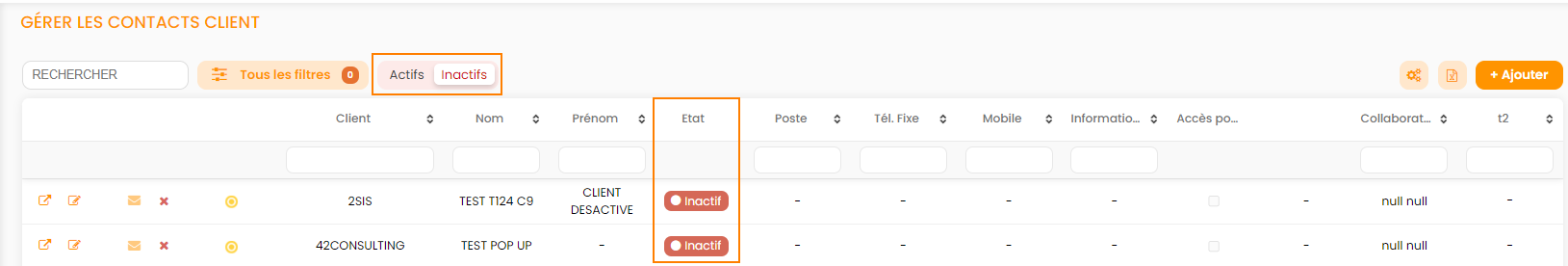 La gestion des contacts inactifs s'effectue au niveau du volet Contacts Clients-> Table Prospects/Clients->Afficher les contacts inactifs.
