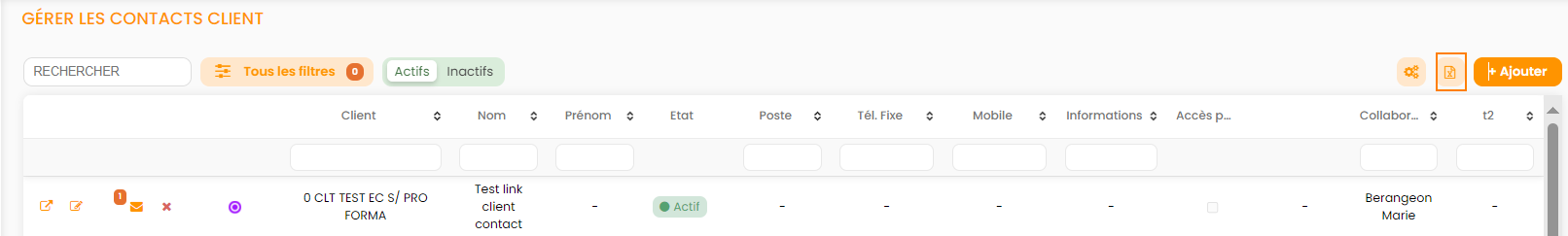 Il est possible d'exporter les tables de contact en cliquant sur le bouton "Export Excel".