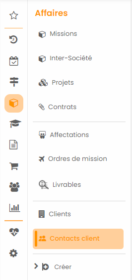 La gestion des contacts clients/prospects s'effectuent dans le module Affaire-> Contacts.