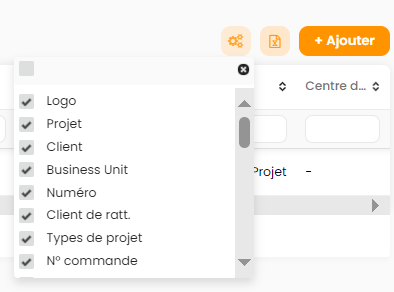 vous pouvez sélectionner les colonnes du tableaux en cochant/décochant les checks boxes :