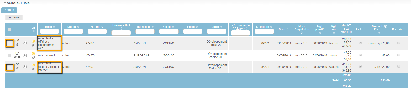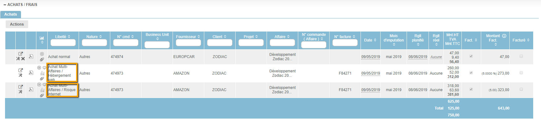 Gérer un achat multi-affaires