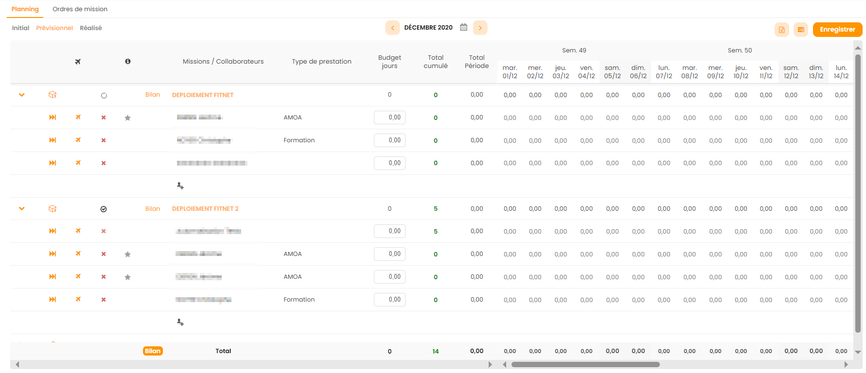 De la même façon que dans les affaires il est possible d'ajouter / modifier les affectations des affaires, de voir les chefs de projet ou encore de modifier le planning.