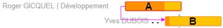 La tâche dépendante (B) ne peut pas se terminer tant que la tâche (A) dont elle dépend n’est pas terminée.