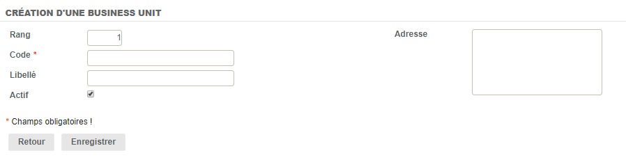En cliquant sur ajouter, vous pouvez créer un nouvelle BU.