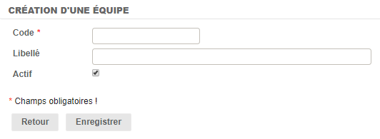En cliquant sur ajouter, vous pouvez créer une nouvelle équipe.