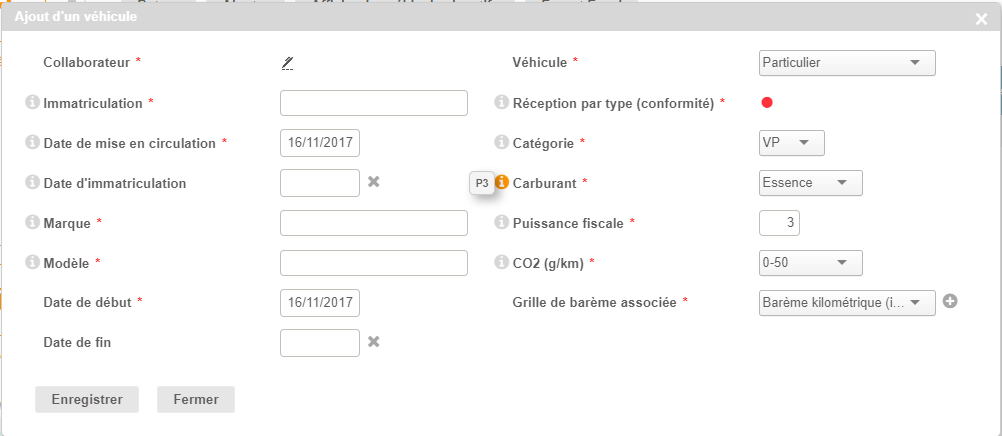 Directement depuis la fiche Collaborateur, il est possible de lui rattacher un véhicule :