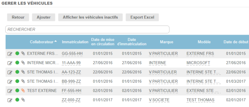 - Véhicules inactifs : non disponibles pour la saisie des frais.