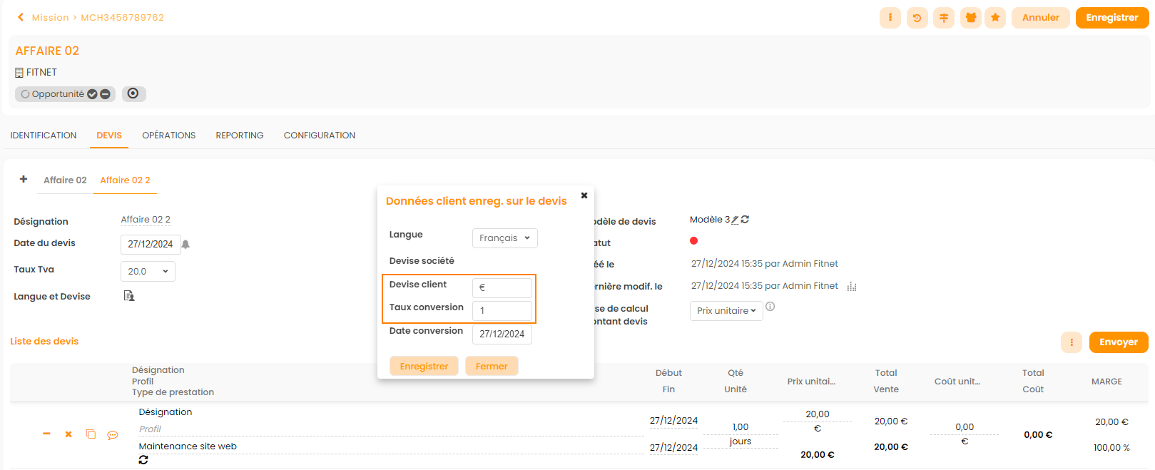 Ou de modifier la devise du client - et d'insérer manuellement le taux de conversion :