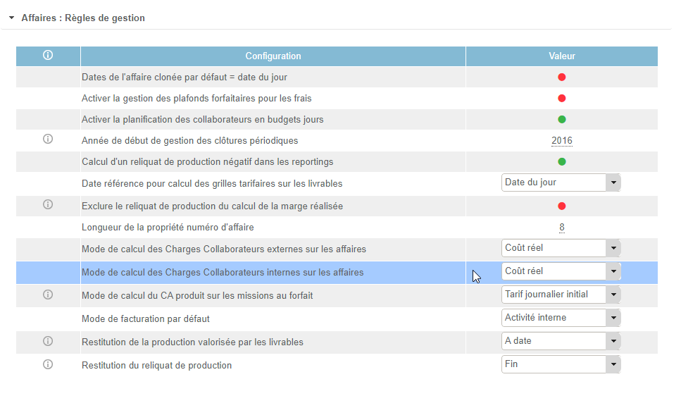Ce paramètre existe également pour les collaborateurs externes, avec deux différences: le bulletin de paye, lié à des contractualisations de salarié, n'est pas possible pour les externes. Quant au coût réel, il n'est bien évidemment pas lié au contrat de travail, mais au tarif d'achat, disponible dans l'affectation.