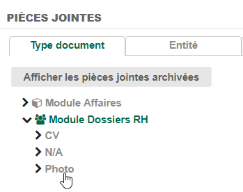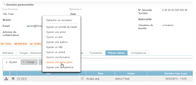 Au niveau du dossier RH de chaque collaborateur il est possible d’administrer les documents individuels de toute nature.