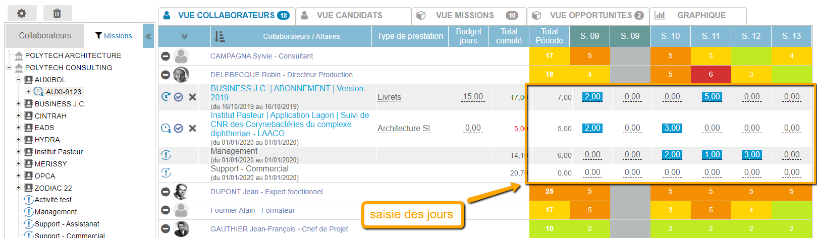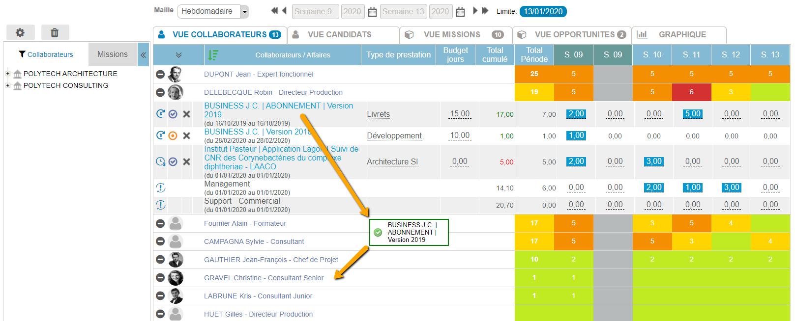 La planification des collaborateurs