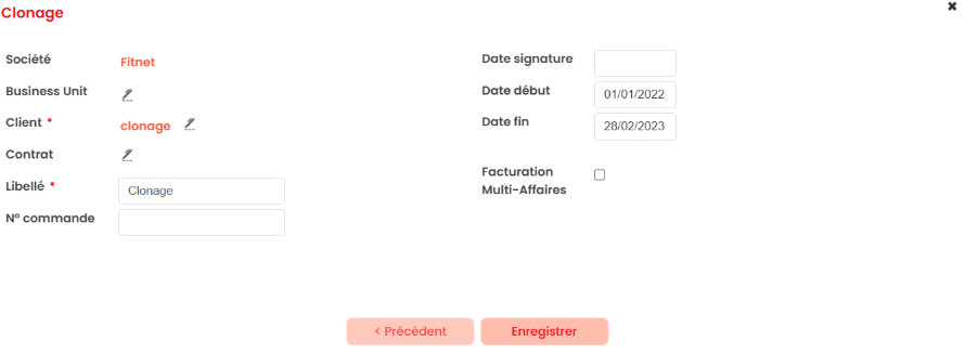 • Le même client : La nouvelle affaire sera clonée sur le même client sans projet’