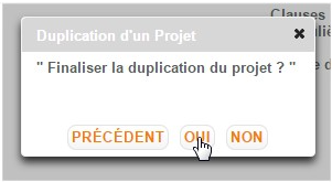 Par défaut le projet clone reprend les éléments descriptifs sources et s’intitule du même libellé auquel le système accole.