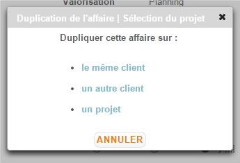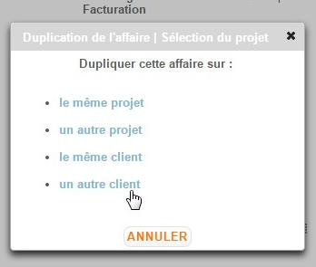 • Un autre client : La nouvelle affaire sera clonée sur un autre client sans projet