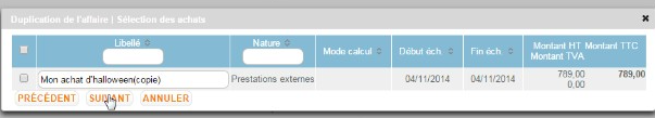 Il est possible de reprendre les achats imputés sur l’affaire source.