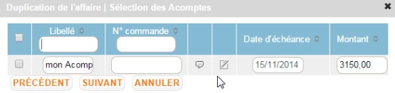 Il est possible de reprendre le/les acomptes planifiés sur l’affaire source.