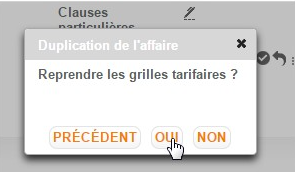 Si une grille tarifaire est rattachée à l’affaire source il est possible de la dupliquer que la nouvelle affaire (gestion des heures supp/astreintes).