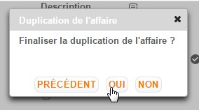 Il est important de noter que toute affaire obtenue par clonage sera obligatoirement créée en statut ouvert : même si l’affaire source est en statut “lancé”.