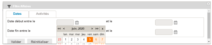 Il existe 2 manières de filtrer les affaires : par Date et par Activité.