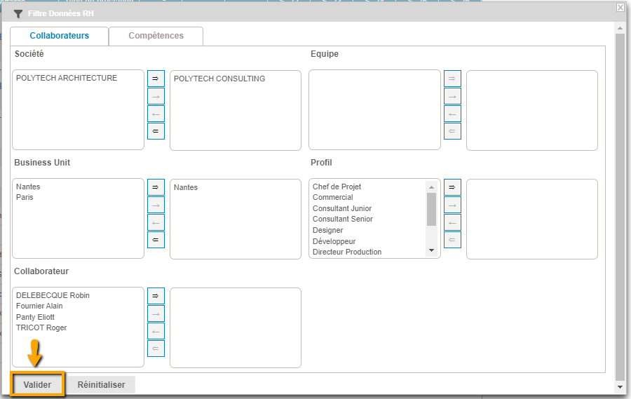 Nous rappelons que l'utilisation de ce filtre requiert d'avoir renseigné des compétences pour vos collaborateurs.
