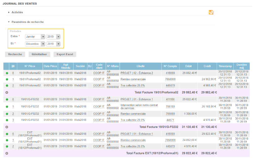 Enfin, ce journal est exportable au format .XSL grâce au bouton Export Excel.