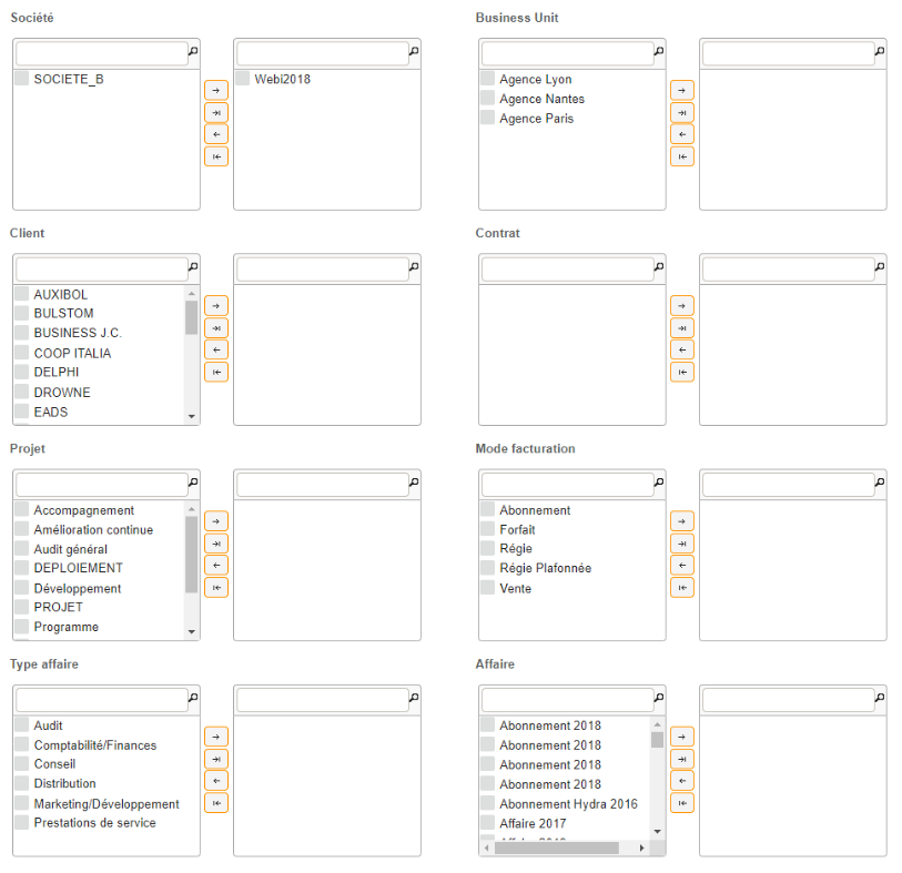 La recherche peut être affinée grâce aux filtres sur les Activités :