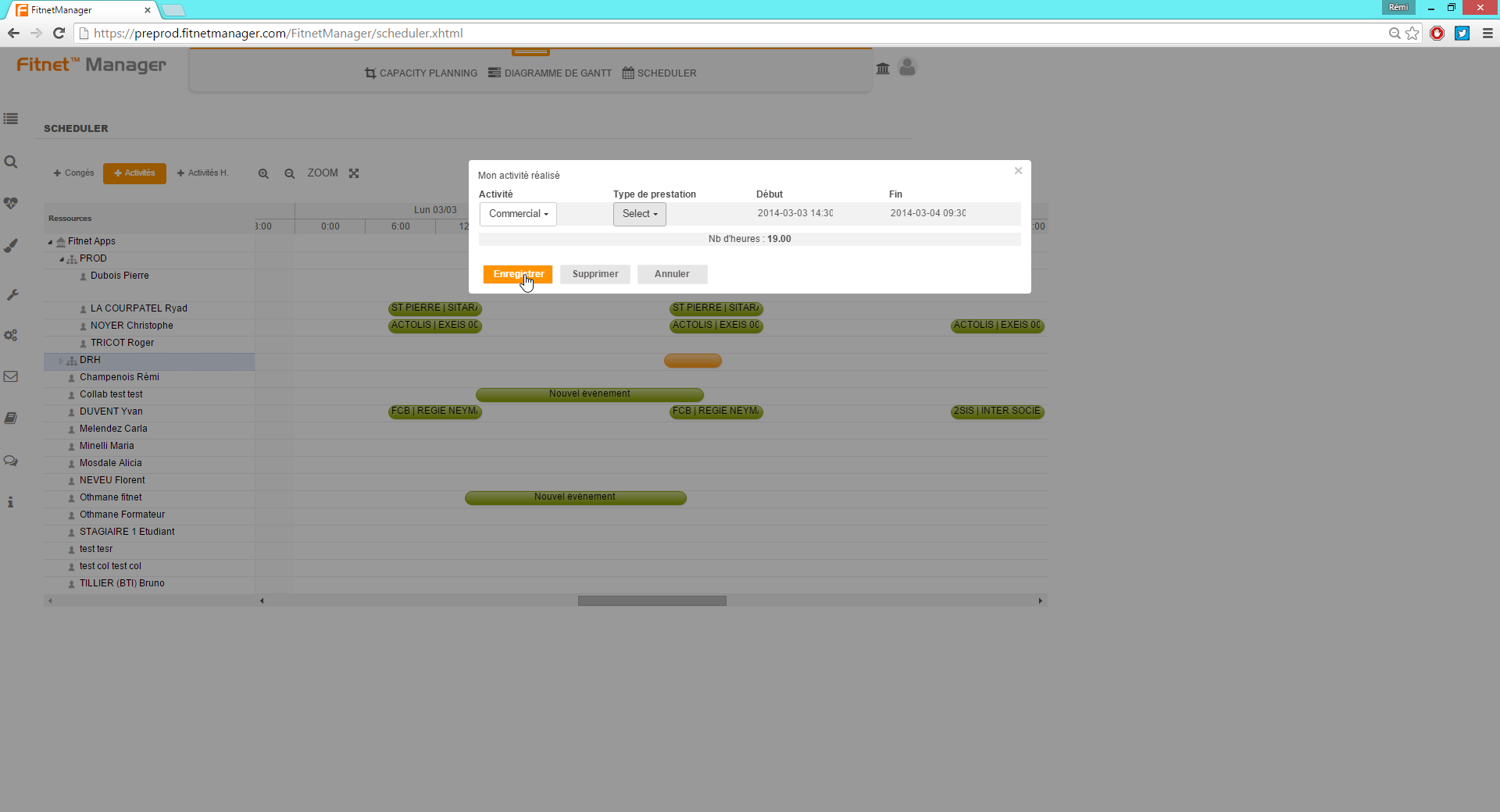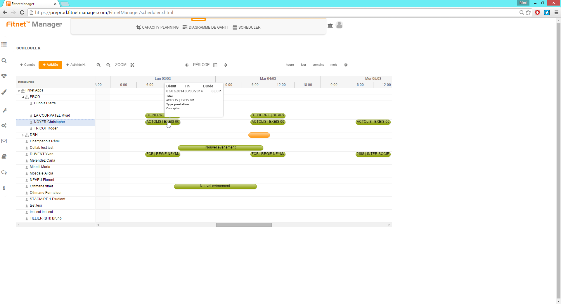 Le Planning “Scheduler” permet de planifier des interventions pour chaque collaborateur, par simple sélection de la tranche horaire souhaitée.