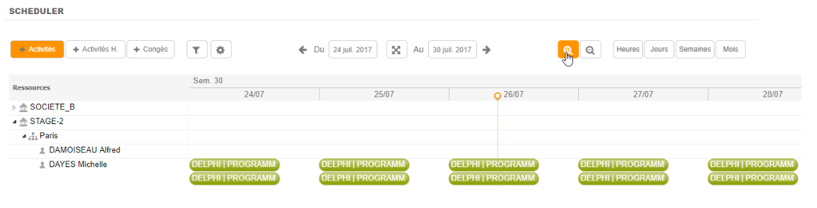 Le Planning “Scheduler” peut être affiché en Mois, en Semaines, en Jours ou en Heures.