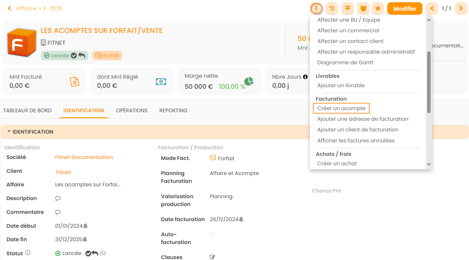 - En Planning Facturation : Affaire et Acompte