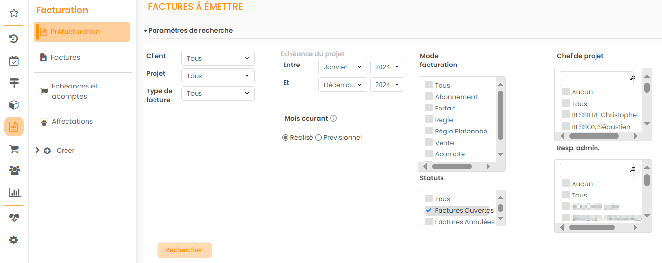 - Au niveau du module facturation : dans le menu Préfacturation