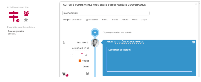 Les tâches et rapports des affaires / données RH viennent du module appelé activité commerciale :