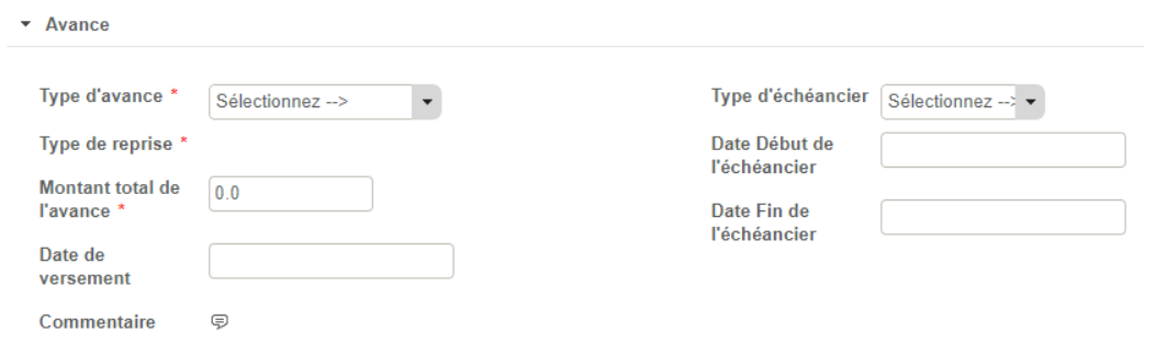 Plusieurs champs descriptifs viennent caractériser l’avance :