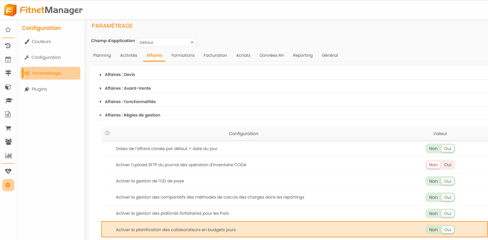 Pour activer la fonctionnalité, rendez-vous dans Paramétrage > Affaires > volet Règles de gestion :