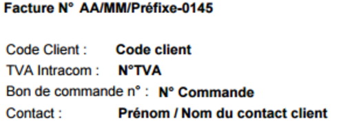 Le préfixe vient ensuite (par défaut F pour une facture, et A lors de l’émission d’un avoir).